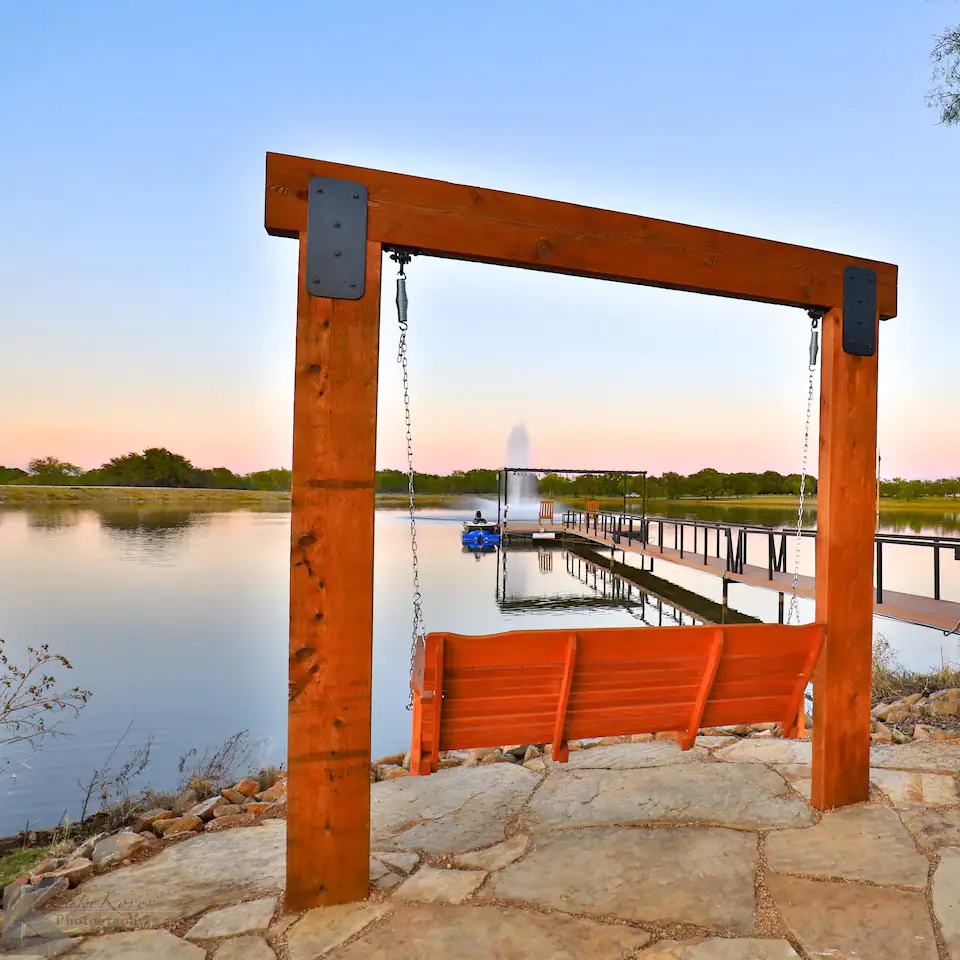 Santa Fe Train Has Arrived For Your Weekend Stay; A Train-Themed Retreat! Nestled by the serene lake, this unique 1-bedroom, 1-bath caboose offers a one-of-a-kind stay. Step inside to discover a luxurious home with modern amenities, where you can unwind by the lake, watch the water fountain dance, and relive the golden age of rail travel.