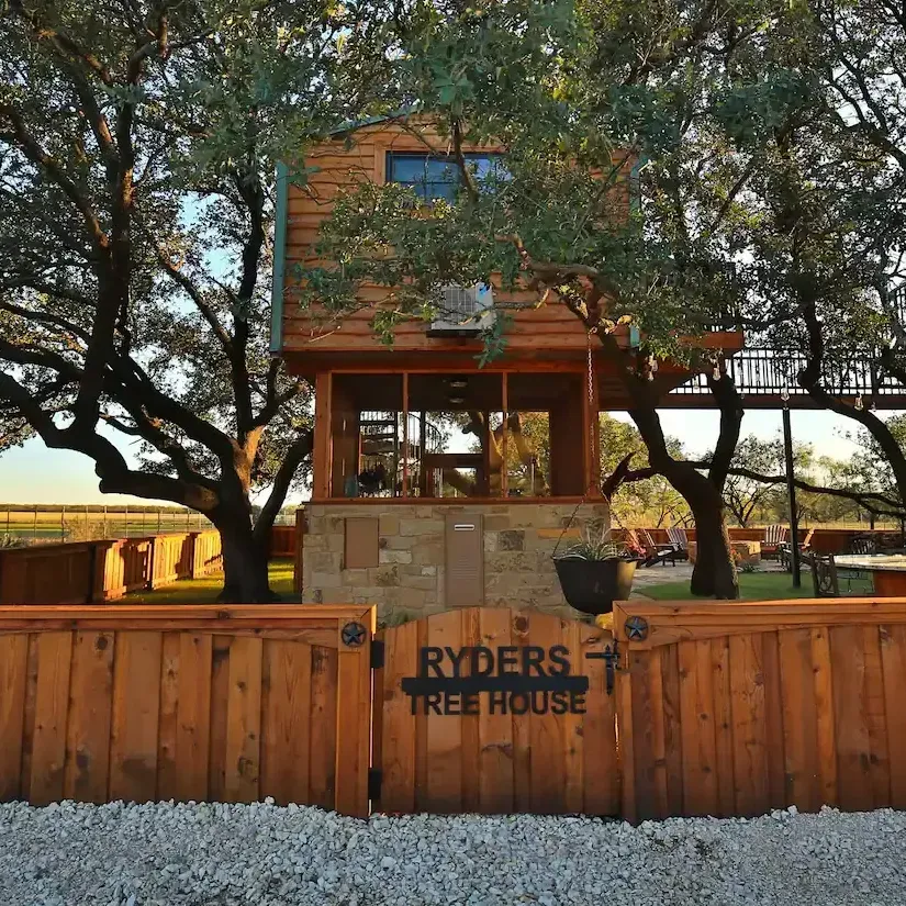 The first of our two treehouse rental units. Elevate Your Getaway in Ryder's Treehouse! Discover the magic of treehouse living with this one-of-a-kind experience. Perched amidst the treetops, this retreat boasts a firepit, hammock, and easy Texas living. Embrace the serenity of nature while being just steps away from the cattle on the ranch. Unplug and unwind in this treehouse paradise.