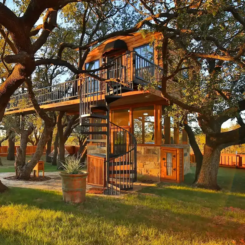 Introducing the latest addition to our quad of distinctive accommodations: Experience enchantment at "The Magic Treehouse!" Step into a world where treehouse charm meets unparalleled luxury. Nestled high among the branches, this extraordinary abode features a cozy fire pit, a relaxing hammock, and the essence of easy Texas living. Immerse yourself in the tranquility of the natural world while enjoying the nearby presence of ranch life. Disconnect and find peace in this magical treetop sanctuary.